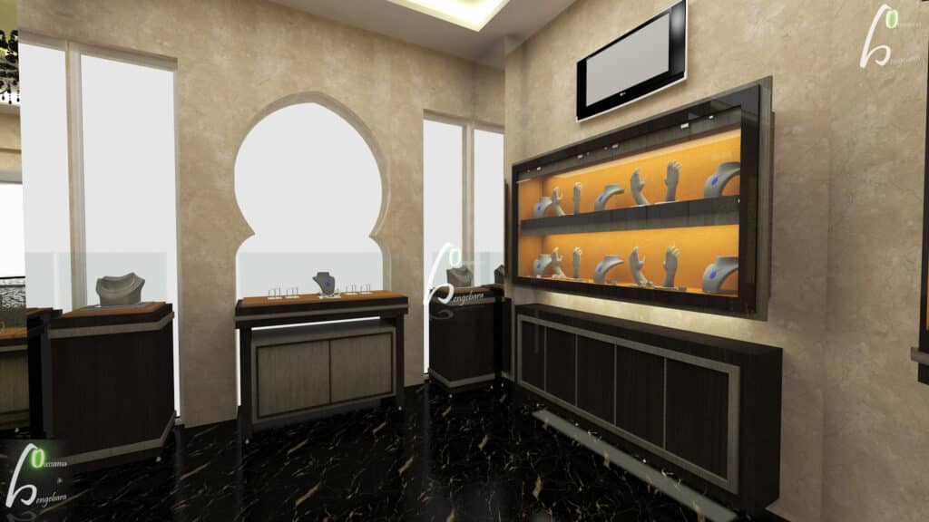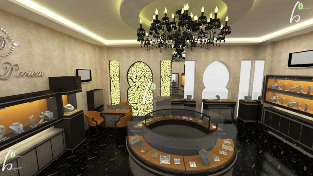 Decodar a réalisé la conception et l’exécution complète des travaux tout corps d’état d’une bijouterie située au Menara Mall, à Marrakech.