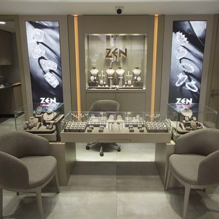 Decodar a réalisé la conception et l’aménagement complet de la bijouterie ZEN Diamond, en assurant une prise en charge globale du projet, de l’étude initiale jusqu’à la livraison finale.